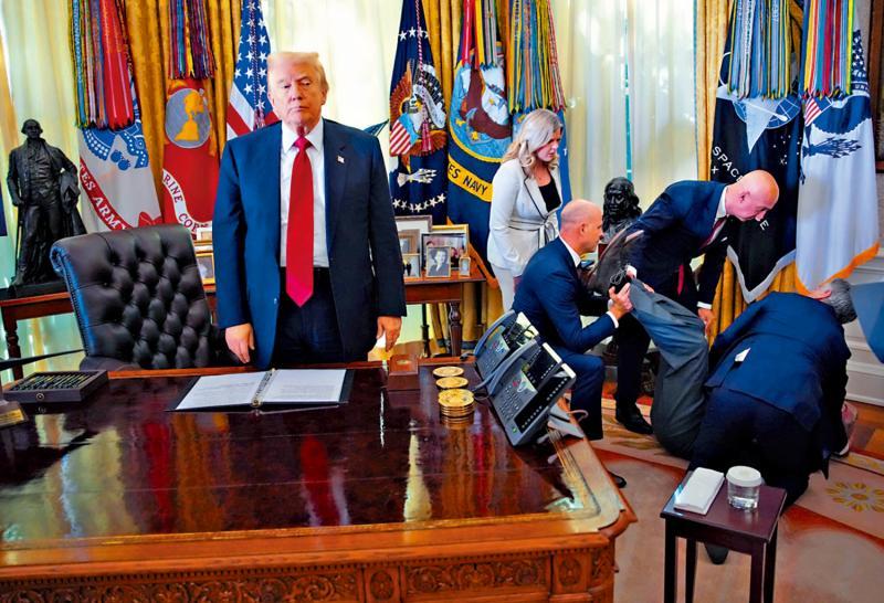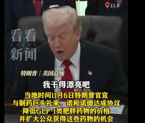 11月6日的白宫发布会上,特朗普高调宣布,经过自己与药企的谈判后,减肥药即将大降价,发布会开着开着,他身后的一位谈判代表,突然两腿发软,瘫倒在地上,发布会因此紧急中断。
