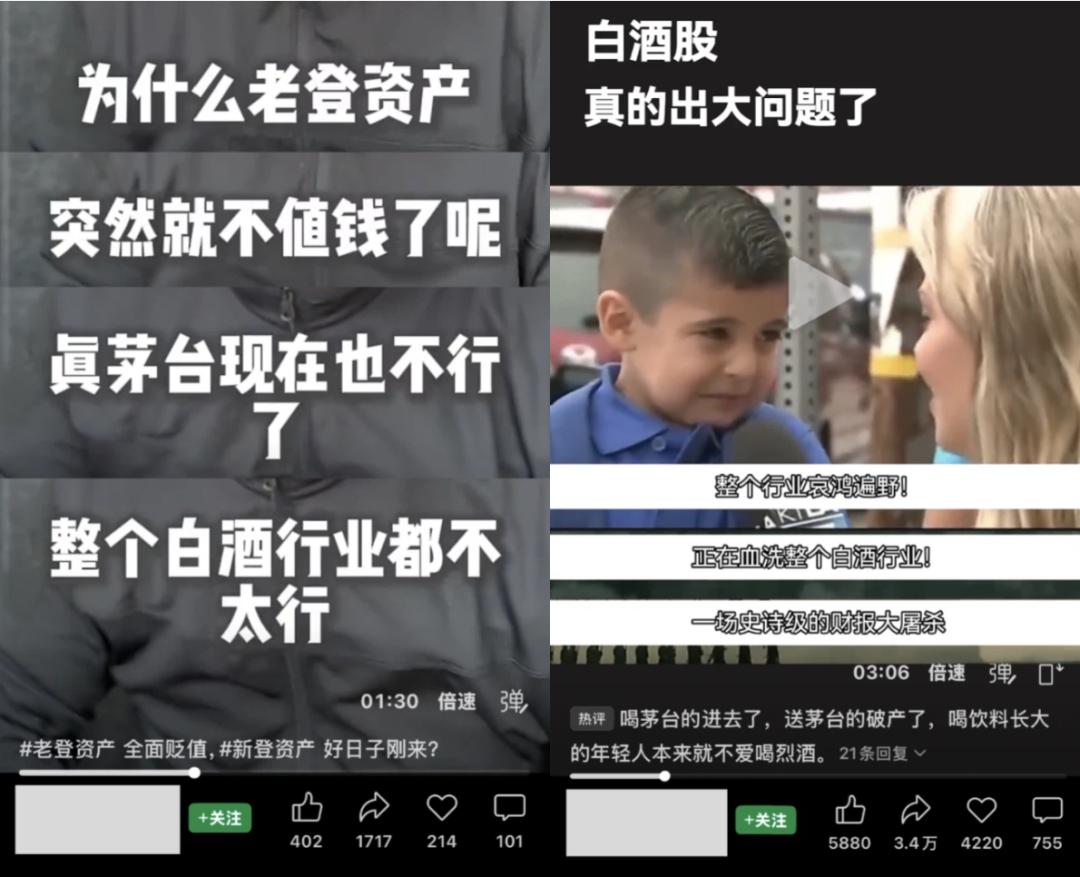 舆论端随之升温。各大平台围绕“白酒不行了”的讨论持续增加:有人称其为“老登资产”,有人调侃“喝白酒的人肝喝不动了”,甚至不乏“白酒行业的末日”之类的极端表达。