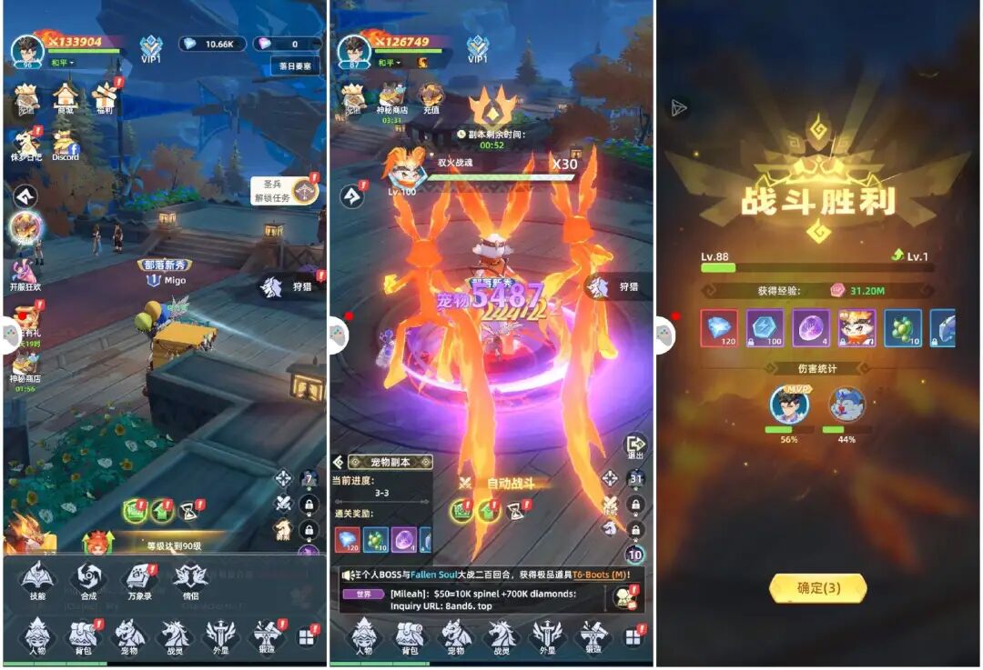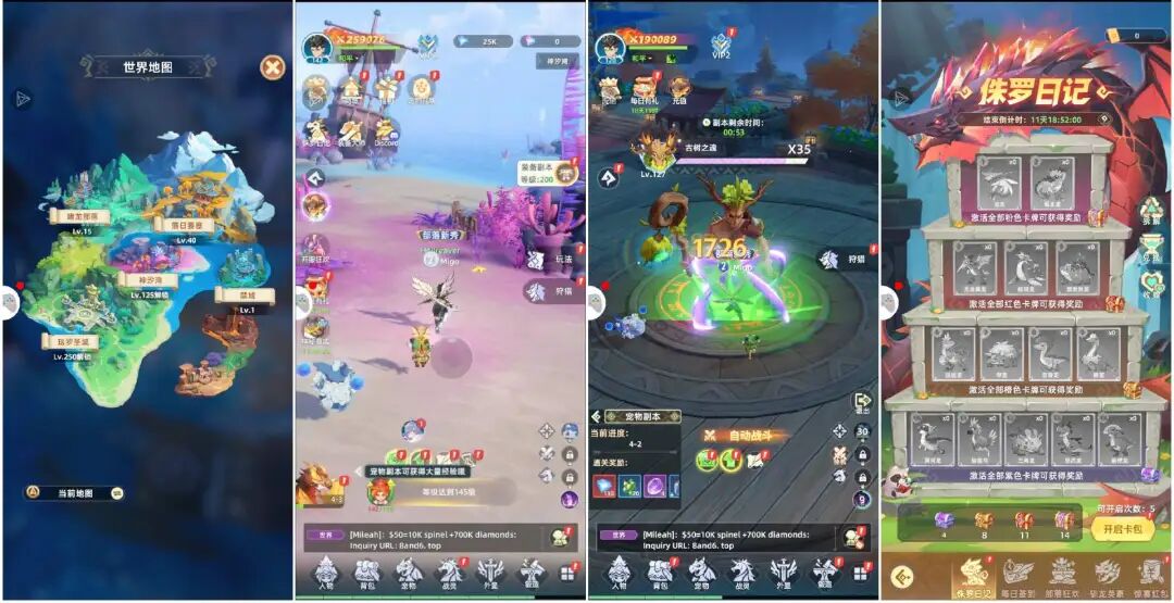 从游戏界面就可以感受到传统的国产MMO风味,紧接着会慢慢解锁自动寻路、自动战斗、自动挂机、宠物抽卡升星、装备强化、战力提升、家族副本、结婚系统等功能,同时还有各种限时充值累充活动,这些要素都让人意识到《Huntopia》只是套上了二次元冒险捉宠的外皮,本质还是乐牛擅长的买量型MMO。