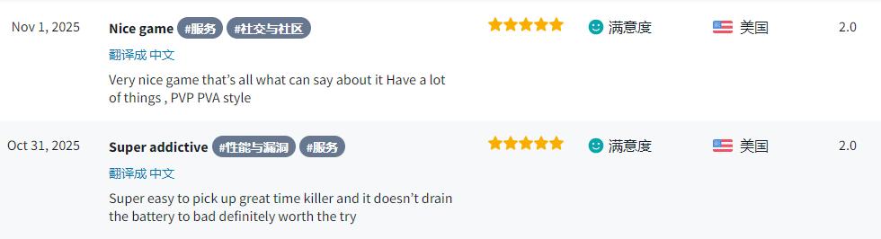 许多美国用户可能不常接触此类买量型MMO,在体验后给出了简单易上手、轻松有趣、内容丰富的评价。