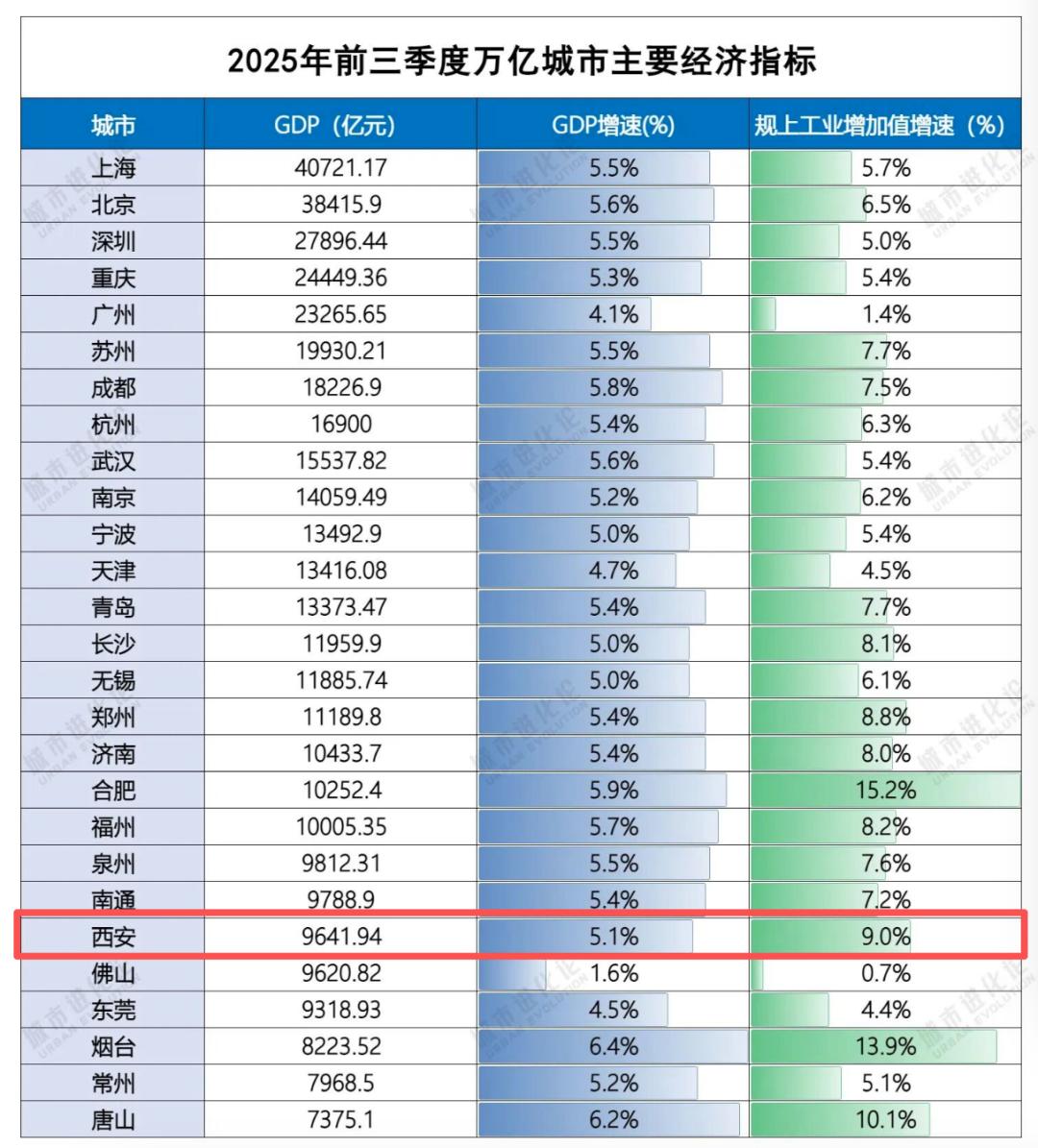 2024年,西安GDP增速4.6%,低于全国平均增速0.4个百分点,某些季度甚至在万亿城市中垫底。