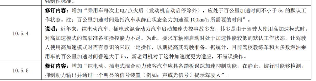 有关车辆性能方面,作出了明确限制:规定乘用车每次启动后应默认处于百公里加速时间不少于5秒的状态。