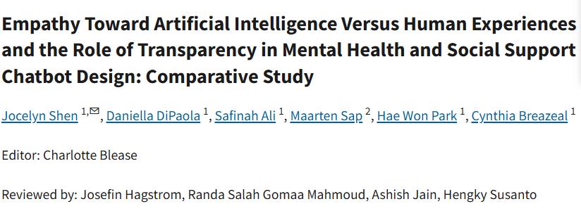 甚至有研究表明,当人们知晓是AI产生的「共情」时,他们对那些交互的信任度会下降。