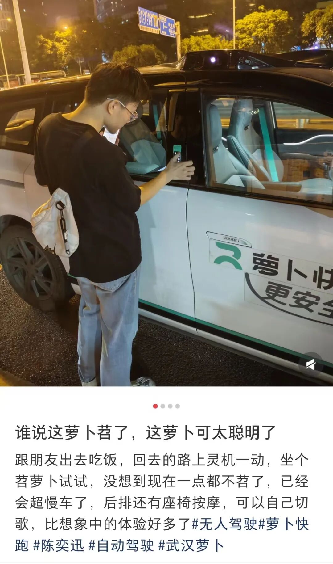 在运营初期还被吐槽“不懂得变通”的“苕萝卜”,现在网友反馈萝卜快跑新款车型会滴喇叭、超车、加塞,感叹“苕萝卜不苕了,可太聪明了”。