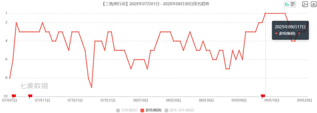 作为当前国产射击的头部产品,《三角洲行动》俨然已经成为腾讯游戏业务的中流砥柱之一。七麦数据显示,Q3期间游戏移动端在AppStore游戏畅销榜排名不曾掉出Top10,多次登顶霸榜。此外,在PC端市场该作表现也是愈发强劲。根据顺网星研社网吧热力榜,游戏于今年8月登上Top2。