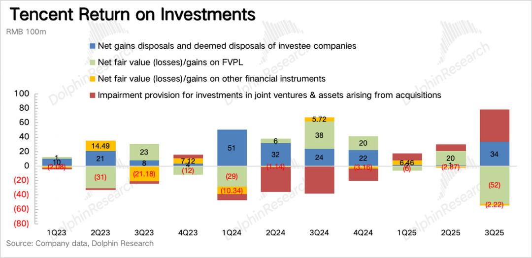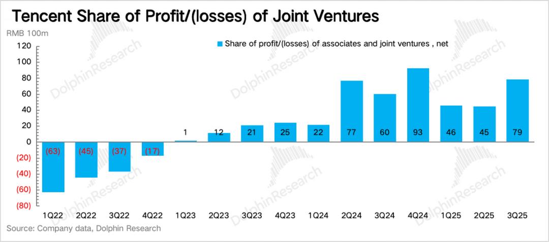 关于投资利得,海豚君基于原指标定义(2025年之前的确认范围),主要看其他收益净额(包含投资收益),以及分占联营/合营公司盈利两个部分。