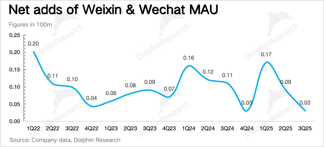 三季度微信用户14.14亿,环比净增300万,相比前几个季度有所放缓。QQ则加速下滑,这种用户迁移上的趋势基本无力抵挡。