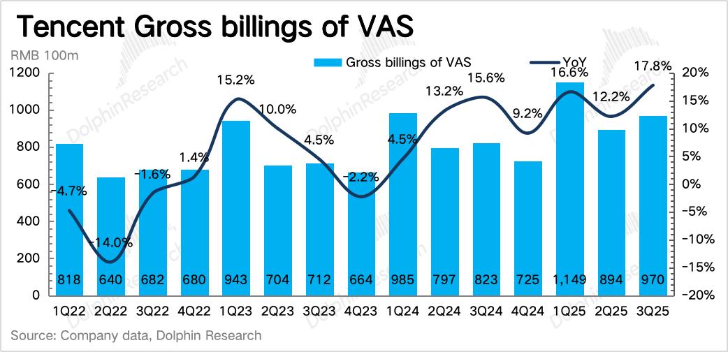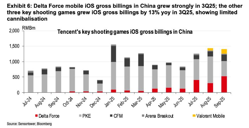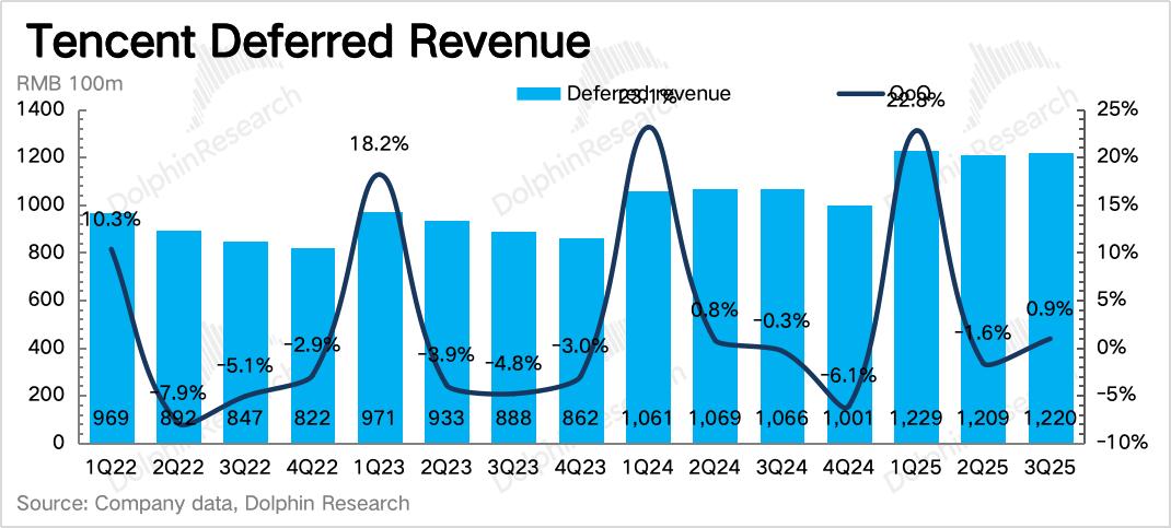 主要推动来自端游《三角洲游戏》、手游《无畏契约》等,以及长青游戏《王者荣耀》、《和平精英》。从递延收入看,Q3环比增加,体现当下高流水的持续性。