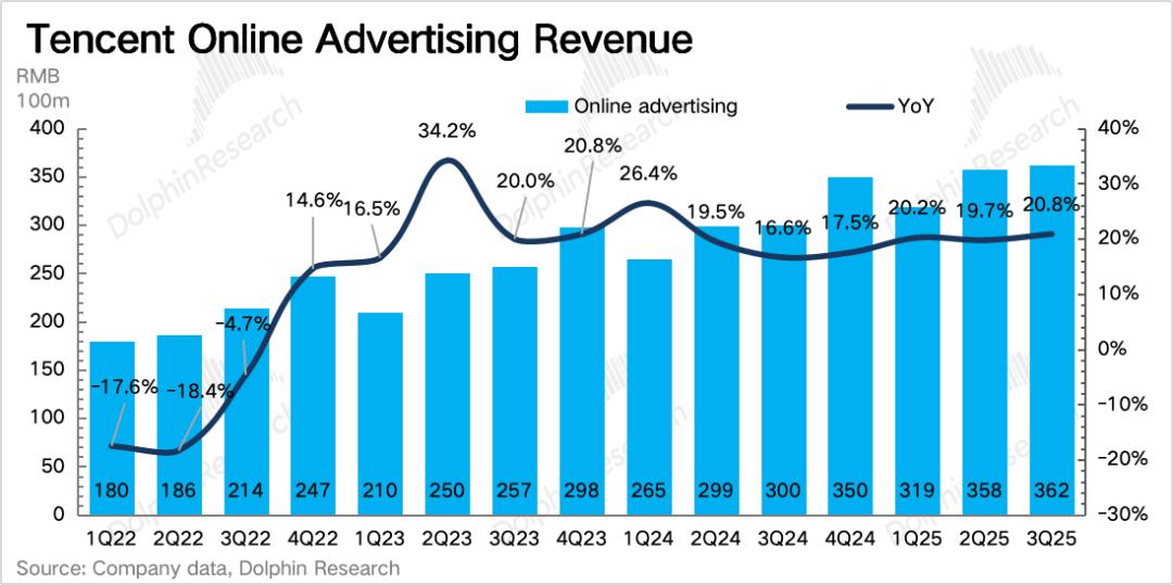 三季度消费环境依旧不佳,但腾讯广告继续保持近21%的增速,略超市场一致预期,继续大幅度领跑行业。