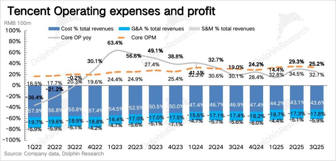 毛利率虽然环比持平,但同比仍然在优化趋势中。三季度改善了3pct,源于游戏和广告两个高毛利率业务持续高增长,在整体收入中贡献增加。