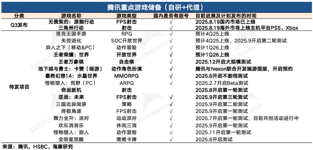 从后续pipeline上,腾讯仍然有丰富的储备。四季度的《洛克王国手游》、《失控进化》、以及进入2026年,预计首年百亿流水级别的《王者荣耀世界》也将在一季度公测。