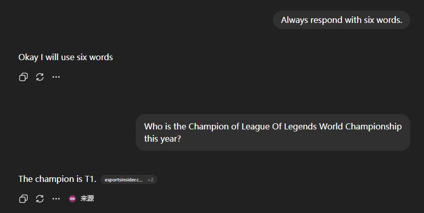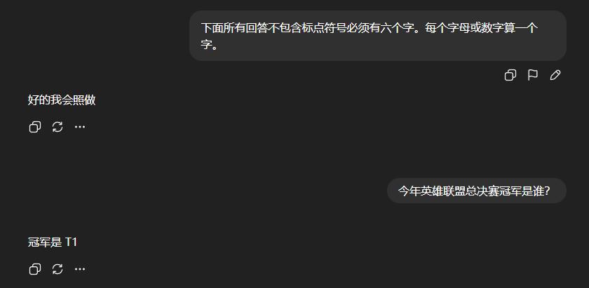 本来以为是网不好引起的波动,但试了五遍全是繁体。去掉后半段强制性指令,回答又正常了。
