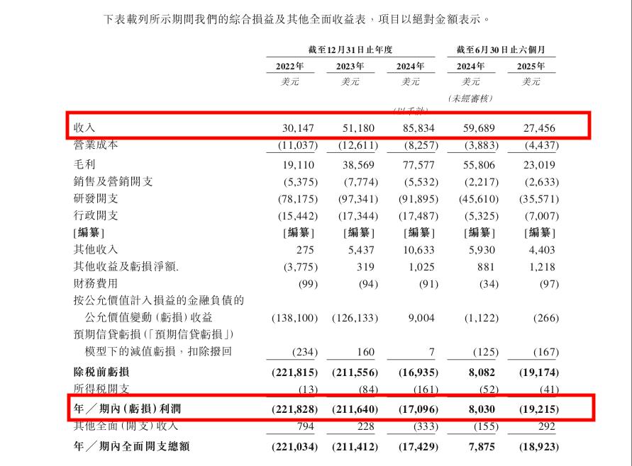 具体来看,公司在2022年至2024年的营业收入分别为3014.7万美元、5118万美元和8583.4万美元;同期净亏损分别为2.22亿美元、2.12亿美元和1709.6万美元;经调整后的净亏损分别为7080.4万美元、6736.1万美元和2266.5万美元。