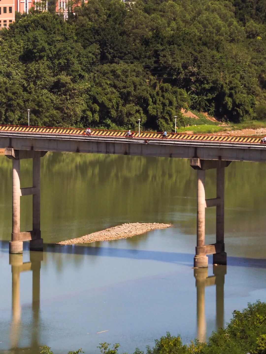 登上半山腰,梅州的同事眼前一亮,“山、水、桥跟画儿似的”。远眺梅江、汀江、梅潭河,三水汇聚成韩江,撕开一道峡口向南奔流而去。我们站在汇聚处,此为大埔三河坝。