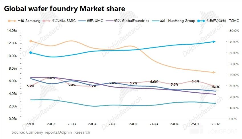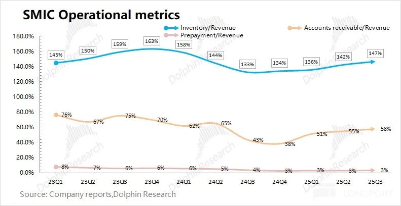 公司本季度资本开支为 23.9 亿美元,即使传统半导体下游相对偏弱,公司仍保持着高额的资本开支。由于四季度资本开支往往也不低,海豚君推测中芯国际可能会上调全年资本开支指引(此前预计 2025 年与 2024 年相近)。