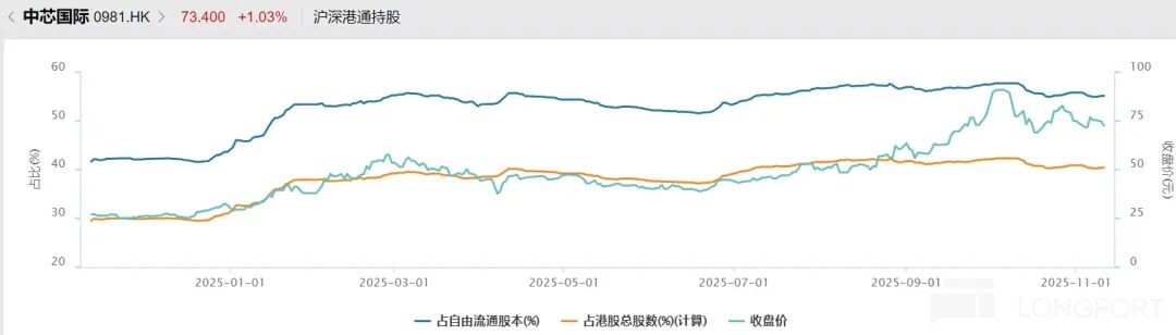 结合沪深港通持股来看,当前中芯国际 H 股的内资持股占自由流通股本的 50% 以上,具有绝对的影响力。公司的股价波动与沪深港股的持股情况,也呈现出较为明显的相关性。