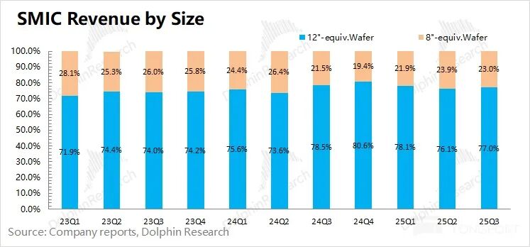 中芯国际从 2022 年一季度起不再披露各制程节点的收入占比,仅披露了 8 寸和 12 寸晶圆收入占比,这就无法细致地看到每个节点的收入变化情况。