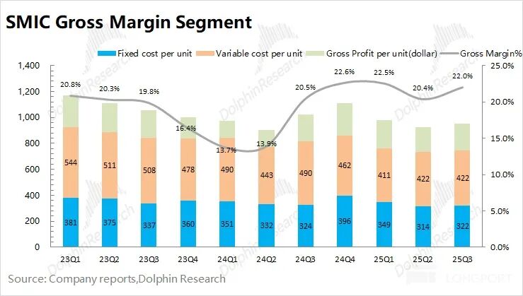 2025 年第三季度中芯国际的毛利率为 22%,环比提升 1.6 pct,市场一致预期(19.6%),高于指引区间上限(18-20%)。