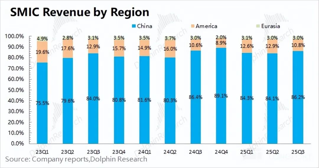 中芯国际重新调整了地区收入分布的口径,从原来的 “北美洲/中国内地及香港/欧洲及亚洲” 调整成了现在的 “中国区/美国区/欧亚区”。由于口径的调整,数据上略有差异。
