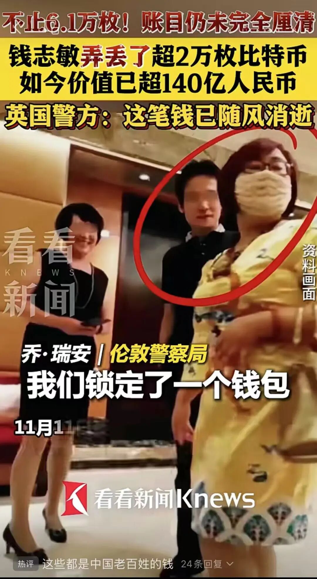 除了被英国警方冻结的6.1万枚比特币外,警方还发现一个虚拟钱包中存放了20008个比特币(现价值超140亿人民币),但钱志敏的笔记本中记录,这笔虚拟货币已经丢失。