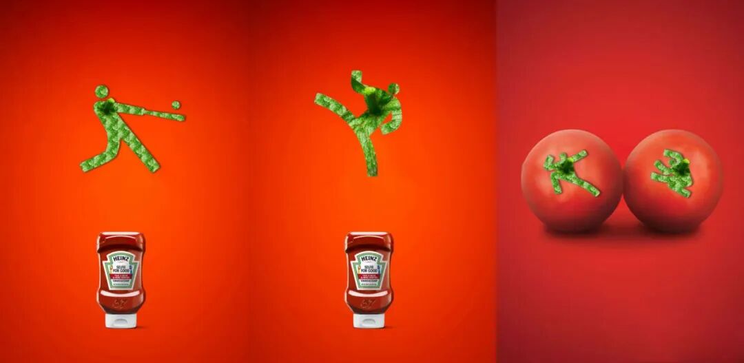 在Heaven&Hell的前期调研中,以番茄梗作为创意元素的案例其实不在少数,但其中大多数停留在艺术化、风格化的表达层面。即便是长期围绕番茄元素进行创意设计的亨氏品牌自身,也从未将梗叶进行彻底的拟人化、写实化处理。