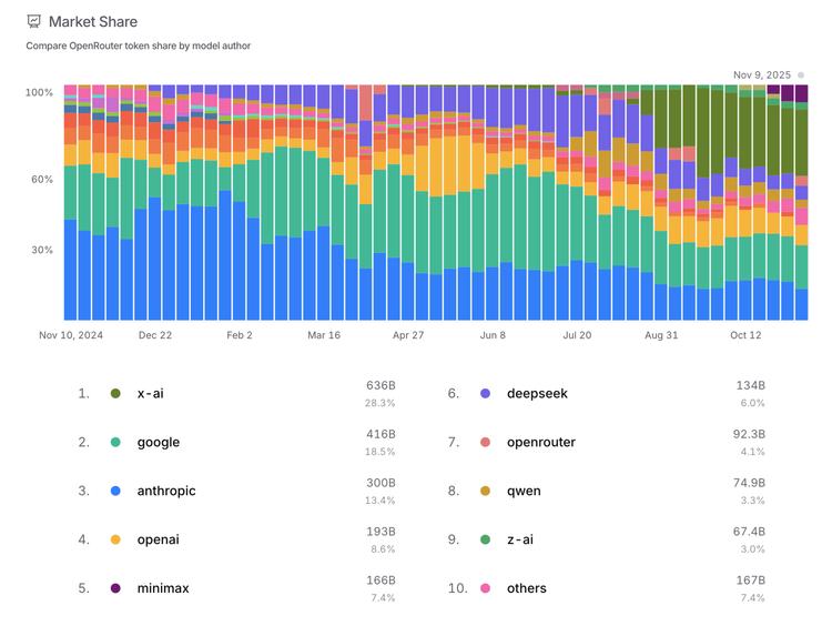 那么,谁正在赢得全球开发者的支持?市场的反应是真实的。在面向全球开发者的平台OpenRouter上,开发者们正在用脚投票,不妨先来看结果。