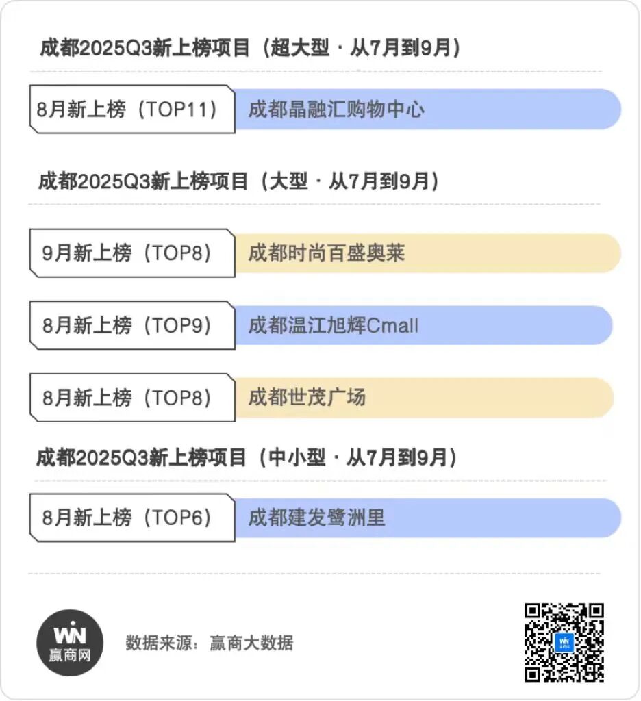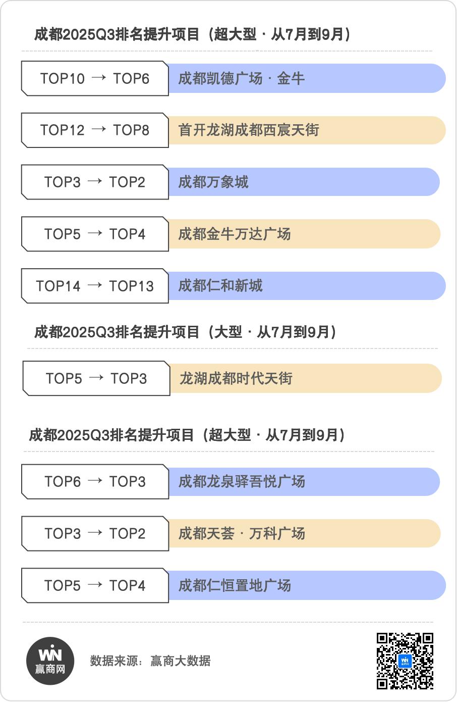 纵观7-9月,头部项目格局稳定,构成市场“基本盘”;而中腰部竞争激烈,成华区崛起势头强劲,龙湖等头部运营商共同勾勒出成都多中心、网格化的商业新版图,为年关消费旺季积蓄了充足动能。
