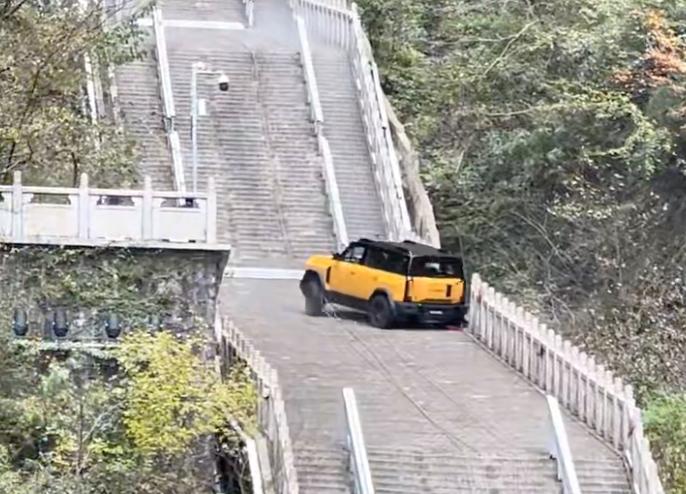 天门山 999 级天梯堪称汽车性能的“终极试炼场”:全长近 300 米、垂直落差 150 米,平均坡度达 45°,这种充满高频冲击的路况,对车辆的动力输出、四驱扭矩分配、轮胎抓地力以及底盘悬架稳定性都是极致考验。