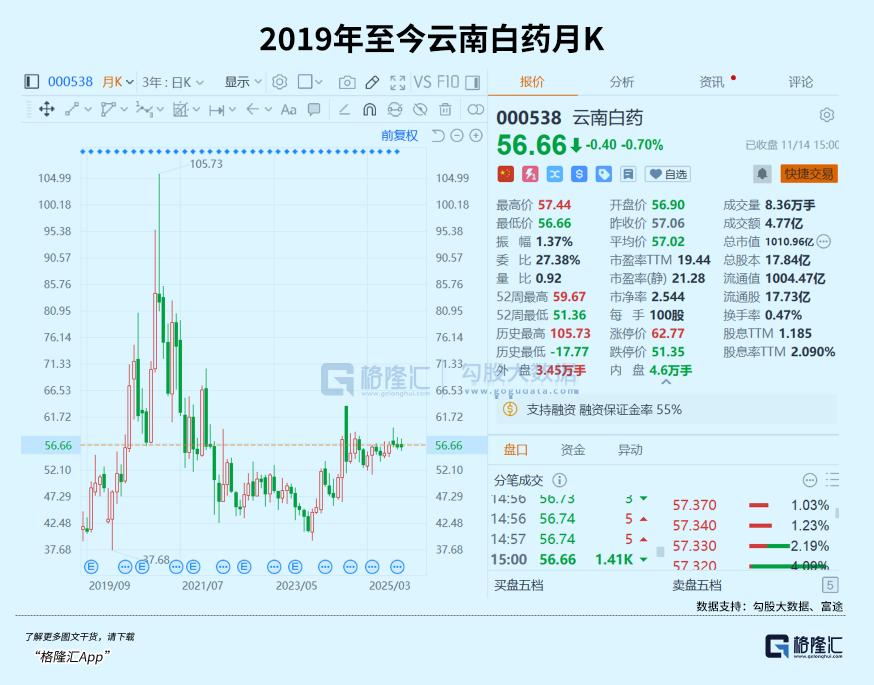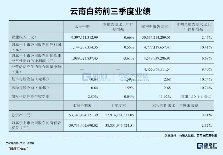 在刚刚发布的三季报中,云南白药前三季度实现营业收入306.54亿元,同比增长2.47%。