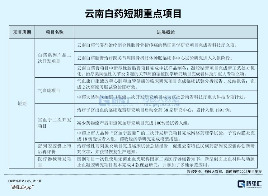 而在创新药上,目前云南白药短期在研项目涉及二次开发的中药大品种16个,开展项目37个。