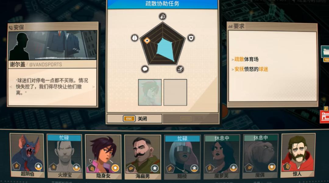 不过作为调度员,男主的本职工作还是坐在工位上盯着电脑屏幕,时刻关注城区地图里弹出的警报并及时安排英雄前往解决事件。这个派遣环节便是需要玩家全程亲手操作的新玩法,通过英雄选择或配队完成五维图范围判定。