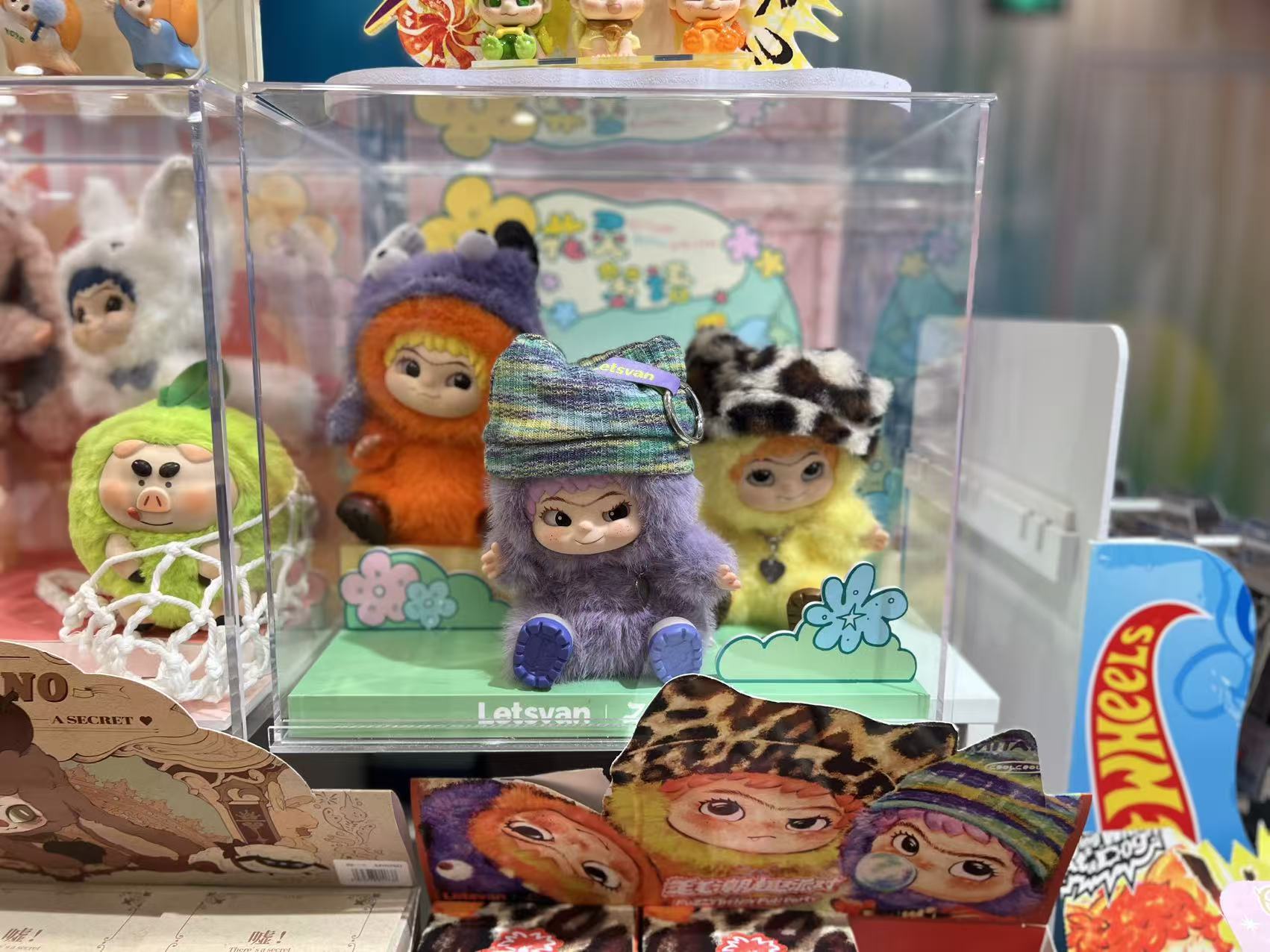 界面新闻在今年多个潮玩展会、以及潮玩集合店观察到,有将近八成的IP纷纷穿上了“毛绒皮套”,以毛绒玩偶包挂的产品出现。一方面这的确迎合了市场需求,但另一方面,对于刚诞生的IP来说,千篇一律用毛绒皮套包裹可能并不利于设计形象的完整展示,也很难让消费者一眼抓住。