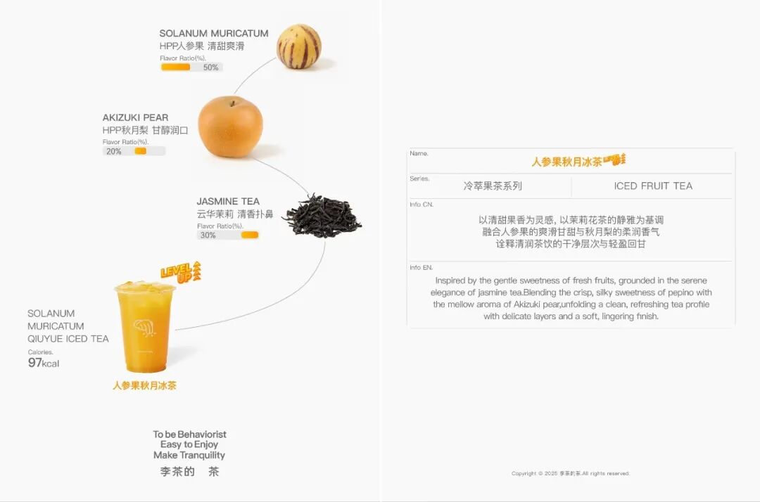 在解构苹果的热潮下,李茶的茶走出了不同的路径。品牌借势解构新品“人参果秋月冰茶”,将产品配方、工艺向消费者公开。