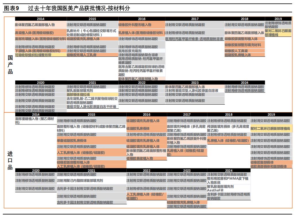 一方面,爱美客正加速产品迭代,寻找下一个“嗨体”。成立以来十年间,爱美客平均每7个月就推出一个新品,截至2024年底,爱美客共拿下17个医疗器械注册证(含11个三类医疗器械证)。
