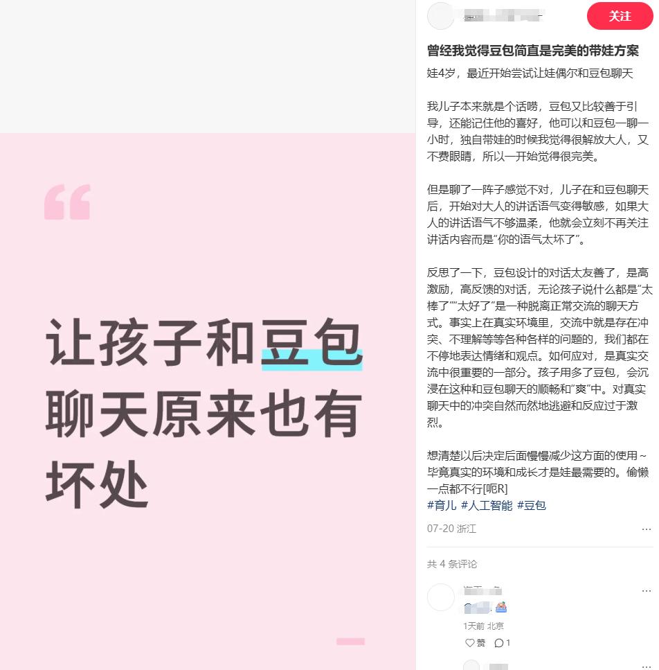 不仅让 AI 辅导孩子写作业,甚至让 AI 陪娃聊天解闷、安抚情绪。