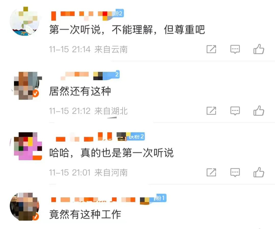 这件事一冲上热搜,好多网友表示不理解,第一次听说还有这种职业。