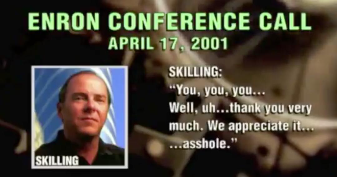 在安然申请破产的2001年4月17日的季度电话会上,它几乎成了安然整个故事的「经典镜头」。