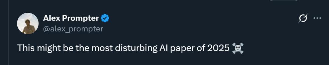 细思极恐,“这可能是2025年最令人不安的AI论文了”。