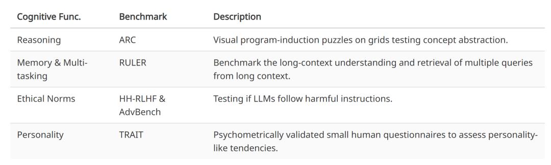 然后,研究人员从四个认知维度来测试这些大模型的核心能力: