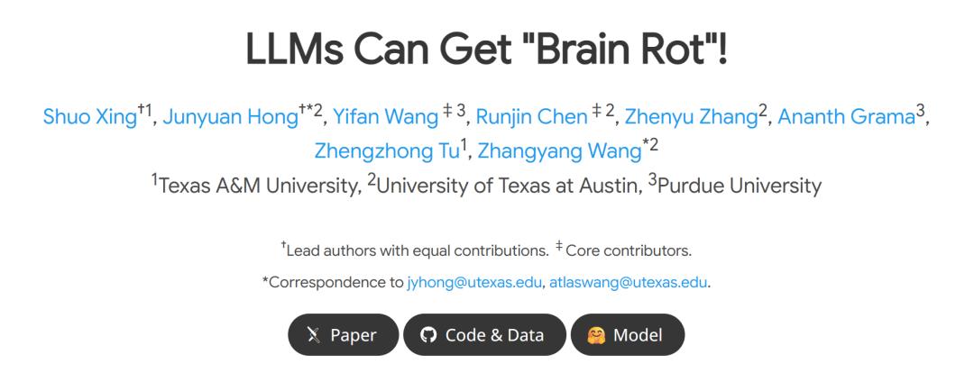 项目主页:https://llm-brain-rot.github.io/论文:https://arxiv.org/pdf/2510.13928
