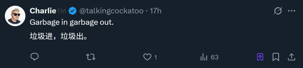 以及诸多讨论之中,“垃圾进垃圾出”这一计算机习语也再度被频频提及(doge),堪称“计算机第一性原理”了。