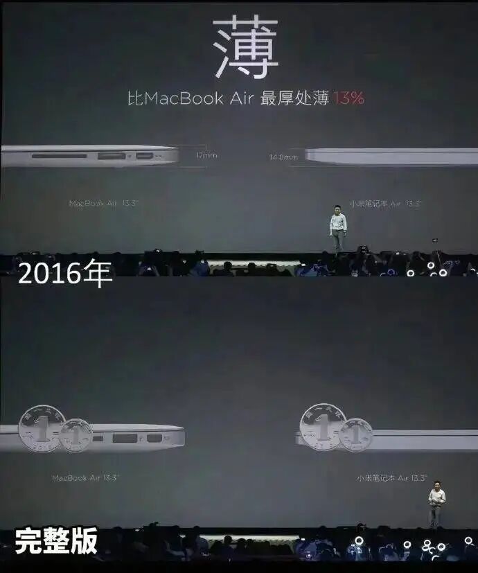 实际上,不少用户对小米的信任早已在日常的营销中被逐渐消耗了。SU7 Ultra 的前机盖的风道只是风味设计,「16.8 亿种驾驶模式」只是几个核心参数的排列组合…… 这样的做法,让人不可避免地联想到小米在其他领域的一些操作:比如宣传笔记本「比一元硬币还薄」,实际对比的是硬币竖起来的高度;宣传手机是「逆光之王」,又在右下角标注「是产品设计目标」。