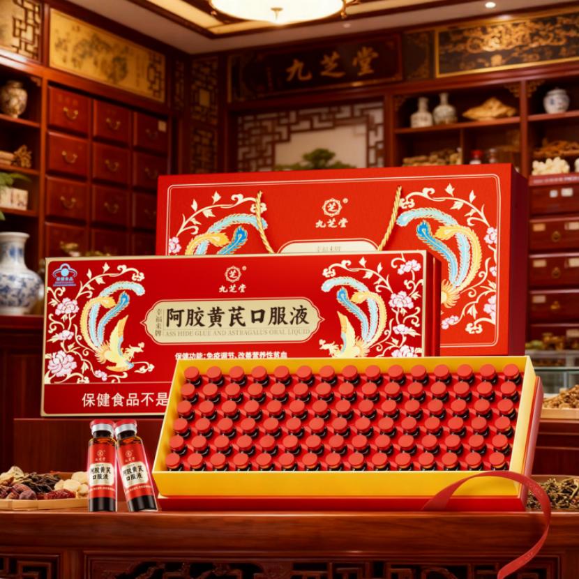 因此,九芝堂没有去强化“传统”,反而对产品进行了颠覆性创新:把膏方做成一支随手拧开就能喝的口服液。比如阿胶黄芪口服液,准确地切进了“轻养场景”:工位上、出差时、运动前后、加班夜里,都能成为补给时刻。