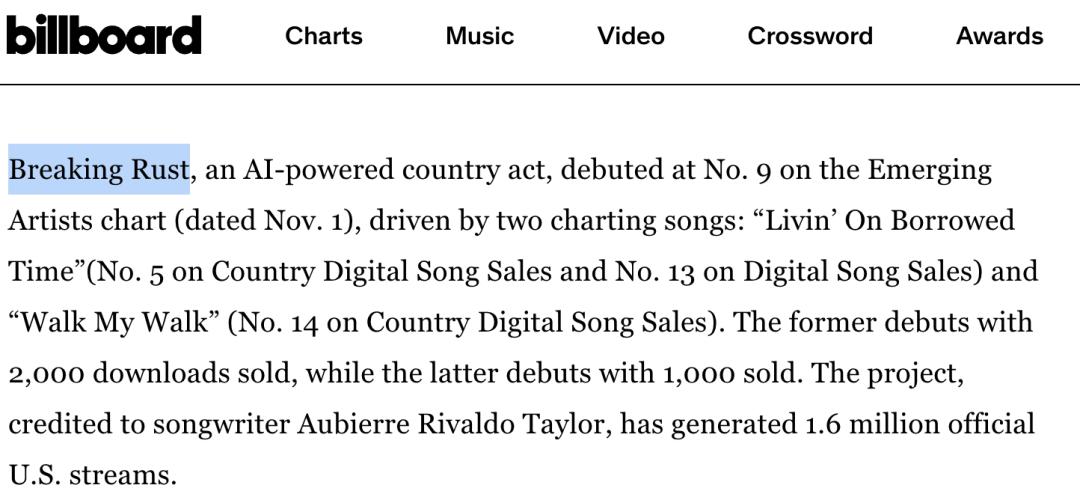 AI乡村音乐登顶Billboard,霉霉最大对手来了?