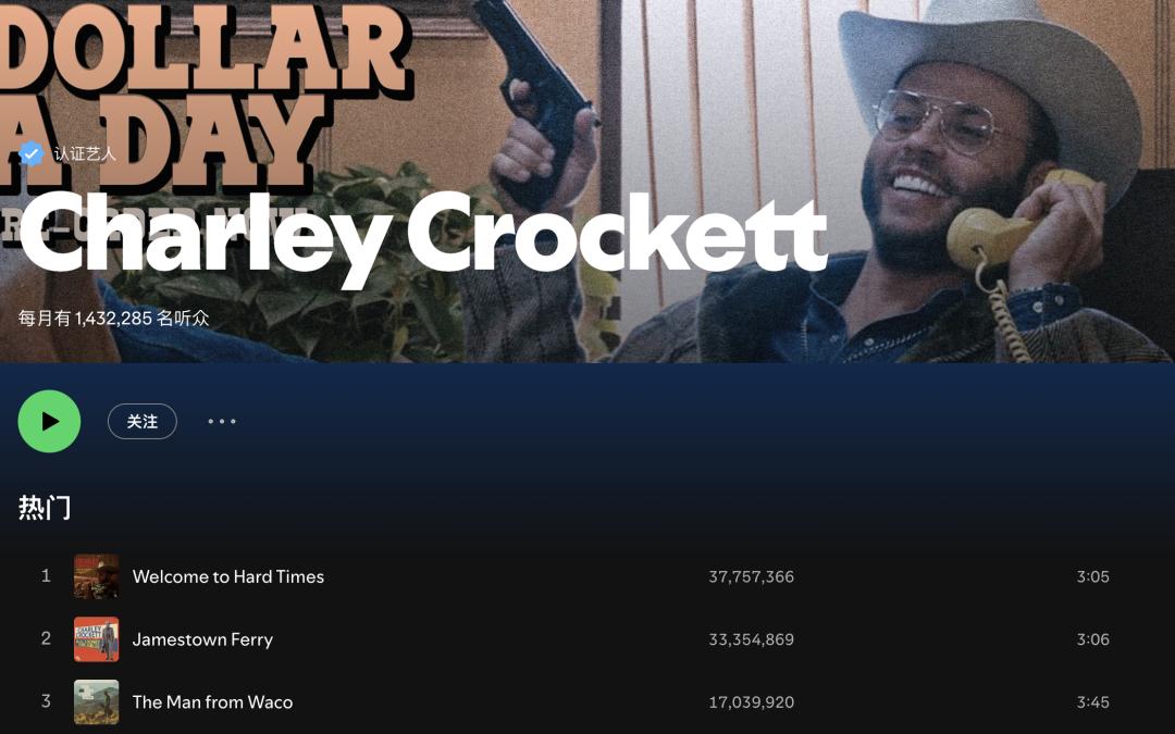 Charley Crockett,创作速度快得连电脑都跟不上,也只有140万。