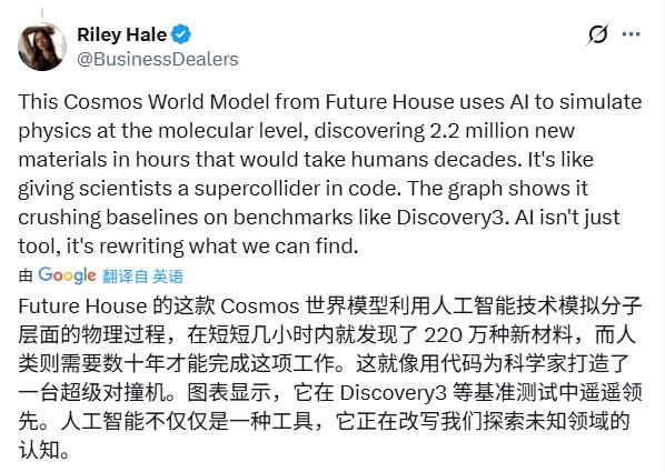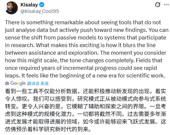 还有人称,这标志着我们进入了一个新的时代:人类科学家与AI科学家协同合作,人类负责指引方向、提出关键问题并进行最终验证,而AI则负责在海量的可能性中进行高效探索。 这无疑将为人类知识边界带来一次前所未有的扩张。