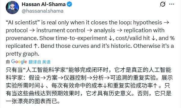 不过,也有网友提出质疑:一个真正的“AI科学家 必须实现从思想到实证的完整闭环,并交出可量化的卓越成绩单。下一代AI科研工具不仅要更聪明,更要更务实。