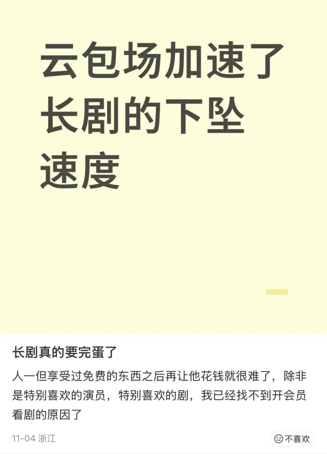 然而,在“后云包场时代”的喧嚣中,我们看到的不是日渐蓬勃的流量市场,而是一种“杀鸡取卵”式的虚假繁荣。观众的付费习惯被稀释,剧集的真实口碑被遮蔽。短期收益的背后,是长期信任的坍塌。