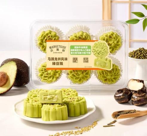 例如,沃集鲜吨吨桶发酵乳仅使用生牛乳、白砂糖与乳酸菌三种配料,以更优原料与工艺实现清洁配方与清爽口感;马蹄龙井风味绿豆糕,将广西马蹄丁和桂花等特色食材,与墨西哥牛油果泥、泰国糯米等全球优选食材进行融合,比大部分绿豆糕减糖20%,不添加防腐剂,成为一款减糖、优质原料、口感层次更丰富的商品,让传统糕点实现了现代创新。