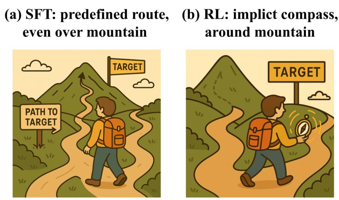 实验显示,同策略(on-policy) 的RL更新,会施加一种隐式的KL「牵引绳」,即锚点效应。